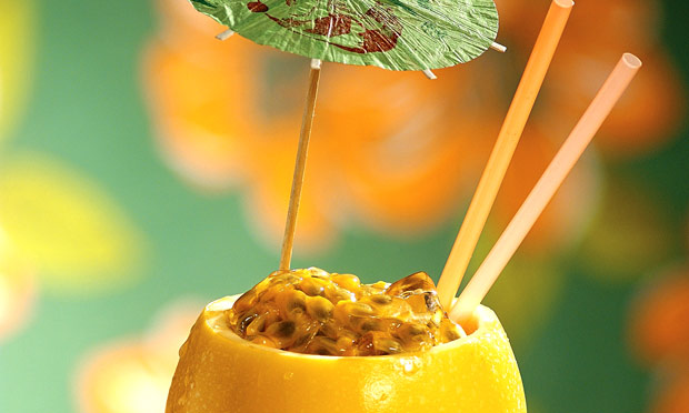 Numa coqueteleira, bata vigorosamente todos os ingredientes com gelo picado. Sirva em um maracujá. Enfeite com a polpa, um guarda-chuva pequeno e canudos coloridos.