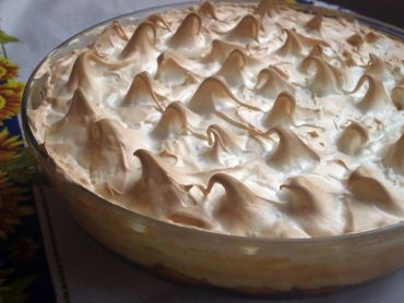 Coloque o creme reservado em cima da calda de caramelo e o merengue em cima do creme.