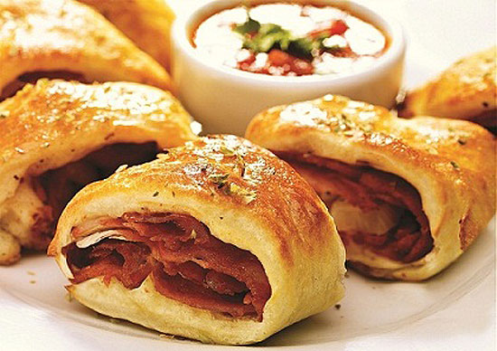 - Depois abra a massa e recheie com uma fatia de queijo e outra de presunto.