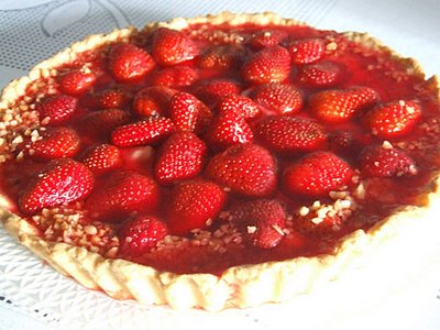 - faça a gelatina como manda a embalagem,depois que o recheio estiver totalmente frio coloque a gelatina pronta em cima do recheio e decore com os morangos