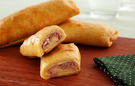 - Dobre as laterais da massa (cerca de 1 cm) para que prendam o recheio e enrole no sentido do comprimento para obter os enroladinhos.