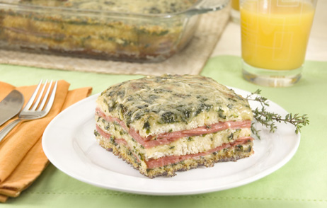 - Repita as camadas de creme de espinafre e mortadela, finalizando com mais uma camada de pão e outra de creme de espinafre.