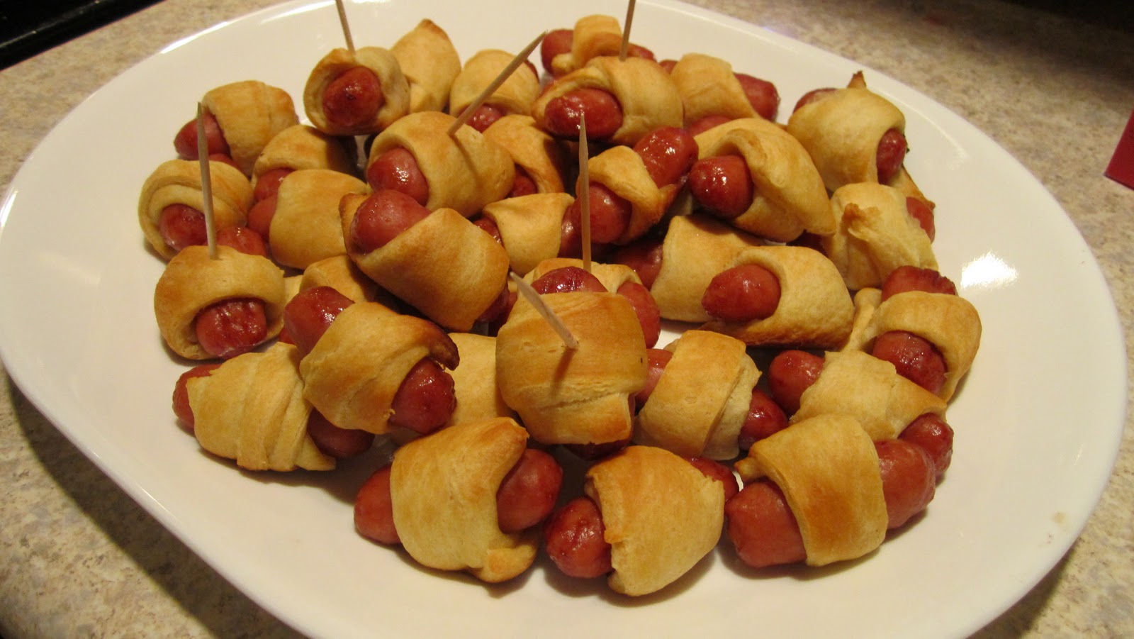 Espalha com o rolo, corta, enrola com salsicha, queijo ou qualquer outro recheio.