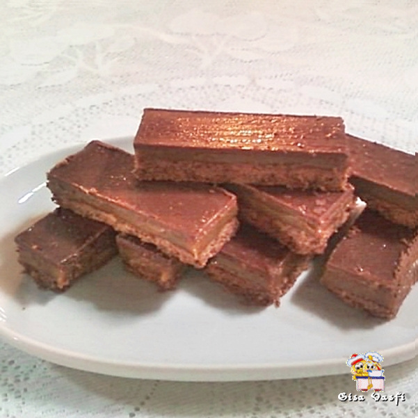 Esta torta é na verdade uma barrinha de chocolate com recheio de caramelo e uma camada de massa.