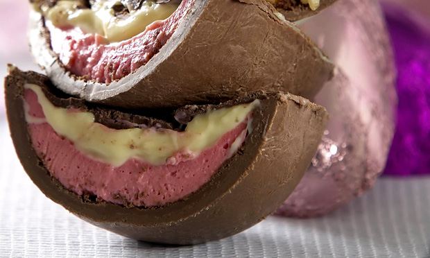 Faça o ovo: derreta o chocolate ao leite de acordo com as instruções da embalagem. Com uma colher, espalhe uma camada na fôrma, leve à geladeira para secar por dois minutos.