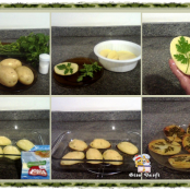 Corte raminhos da erva escolhida, eu usei salsinha, e simplesmente apoie o raminho na parte reta da batata cortada.