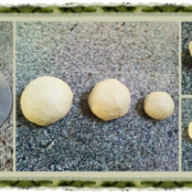 Abra as 5 bolinhas menores, usando o fundo da assadeira/gabarito menor como base e colocando os discos no fundo da assadeira/gabarito medio.