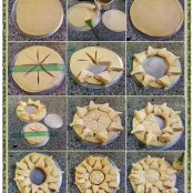 Com uma régua, faça 4 cortes cruzados, chegando até a 1,5 cm da borda e formando 8 pontas no centro da massa.