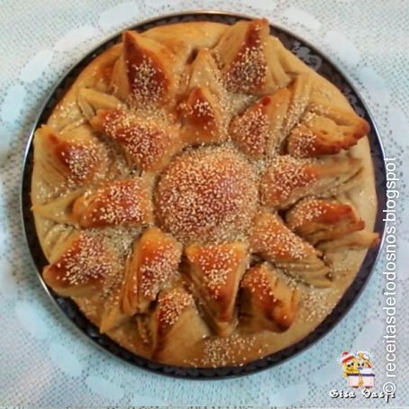 Pincele uma gema desmanchada em azeite em todo o pão e salpique gergelim.
