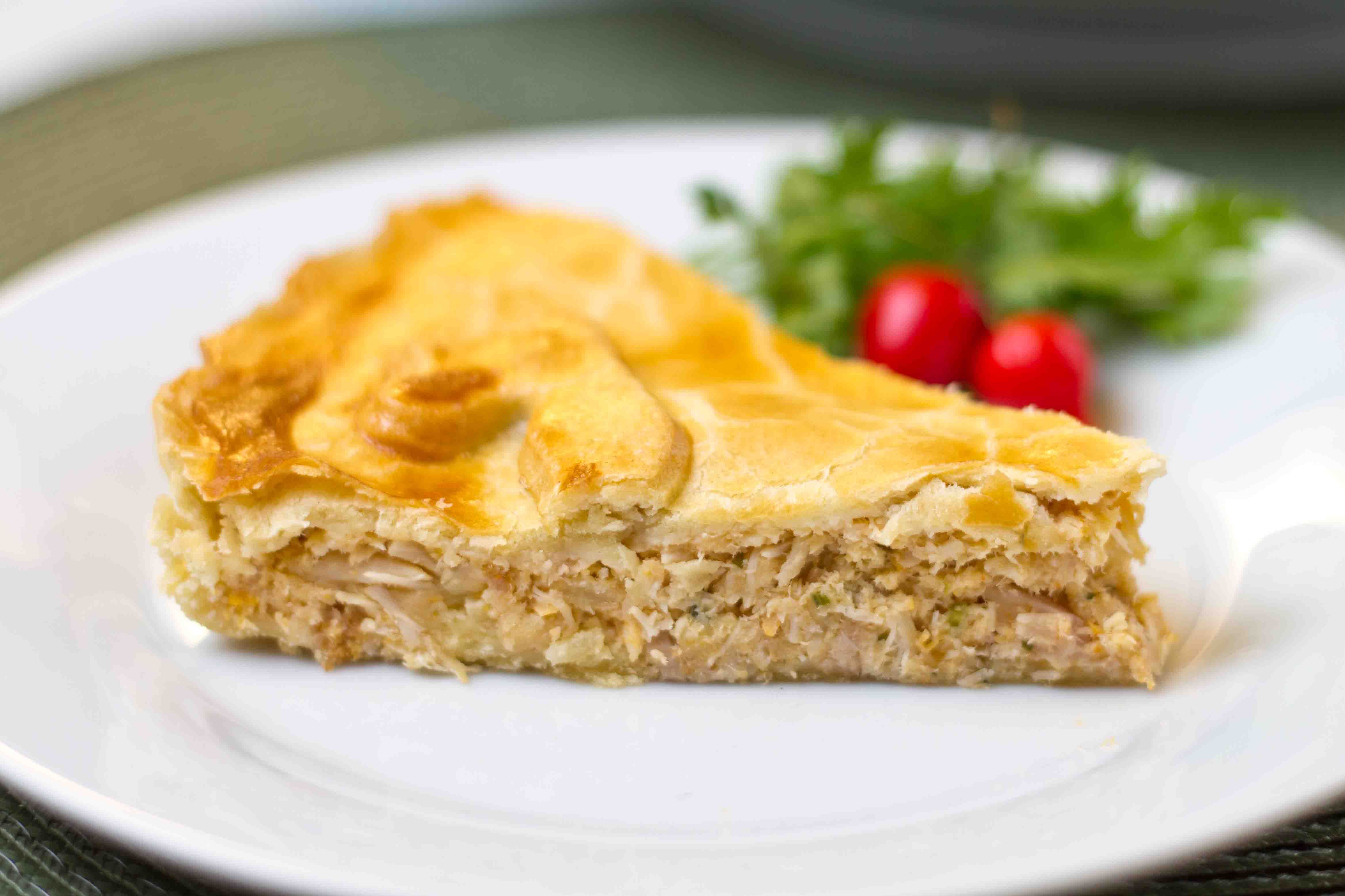 Coloque o recheio e cubra com o restante da massa, também aberta de modo que fique bem fina. Arremate as bordas e leve ao forno médio por cerca de 35 min ou até dourar. Desenforme e sirva quente.