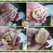 Coloque porções de recheio no centro da massa e feche formando uma trouxinha.