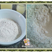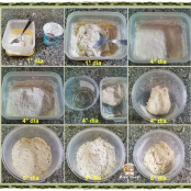 Comece misturando 3 colheres, das de sopa, de farinha de trigo com 2 colheres, das de sopa e bem cheias, de iogurte natural.