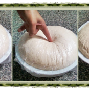 A partir dai o processo é mesmo que para o fermento fresco, inclusive colocar a massa já sovada em uma bacia, colocar a bacia em um saco plástico e colocar sobre uma panela com água morna.