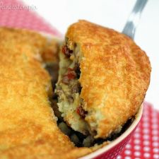 - Num refratário coloque uma porção de aipim/purê, uma camada de recheio (de sua preferência), uma camada de requeijão cremoso, cubra com o restante do aipim e polvilhe queijo coalho ralado.