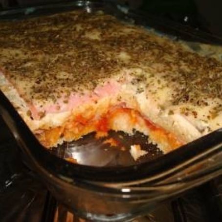 Em uma forma colocar uma camada de pão de forma, cuidar para que toda a forma fique coberta, passar sobre esta camada o extrato de tomate