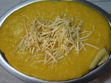 Dica: pode se acrescentar uma camada de queijo entre duas camadas de angu, salpicando queijo ralado por cima.
