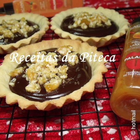 Mini tartes de chocolate com piri-piri com laranja e amêndoa triturada