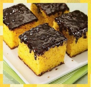 Depois de assado fure o bolo com um garfo e derrame a cobertura quente sobre ele.