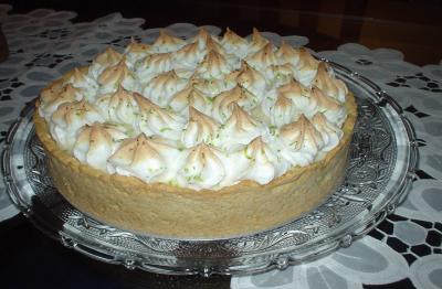 Aplique o recheio sobre a massa já fria, cobrindo em seguida com o suspiro, leve ao forno quente (200°) até o suspiro dourar (aprox. 10 min). Remova o aro da forma e passe para um prato grande. Sirva fria.