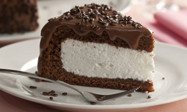10. Prepare a cobertura: derreta o chocolate em banho-maria e misture o creme de leite. Deixe amornar e cubra o bolo. Decore com confeitos de chocolate e sirva.