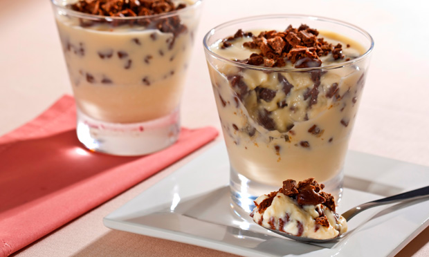 Prepare a gelatina de acordo com as instruções da embalagem. Reserve. No liquidificador, bata o leite condensado, o creme de leite, o sorvete e a gelatina reservada. Em um refratário ou em taças individuais, alterne camadas de creme e camadas de chocolate picado. Leve à geladeira por 3 horas ou até firmar bem.