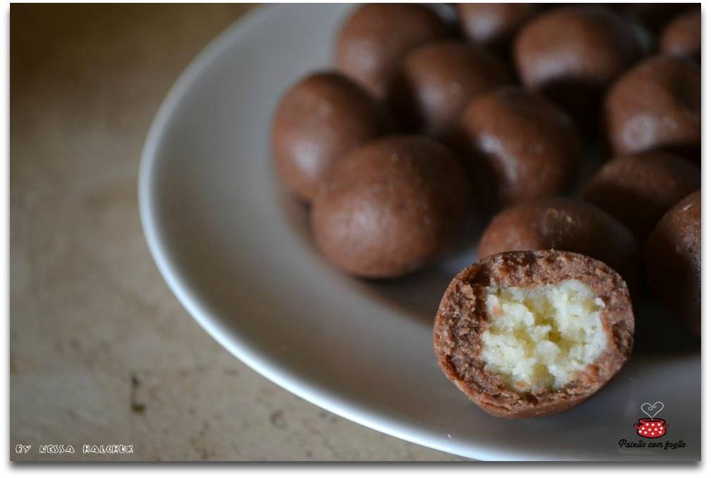 - Depois pegue a massa e amasse faça bolinhas e coloque o recheio dentro