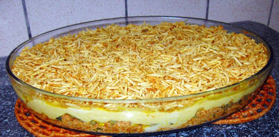 Unte o refratário levemente com azeite, despeje o frango espalhando bem, coloque por cima o creme de milho e por último a mussarela ralada ou picadinha