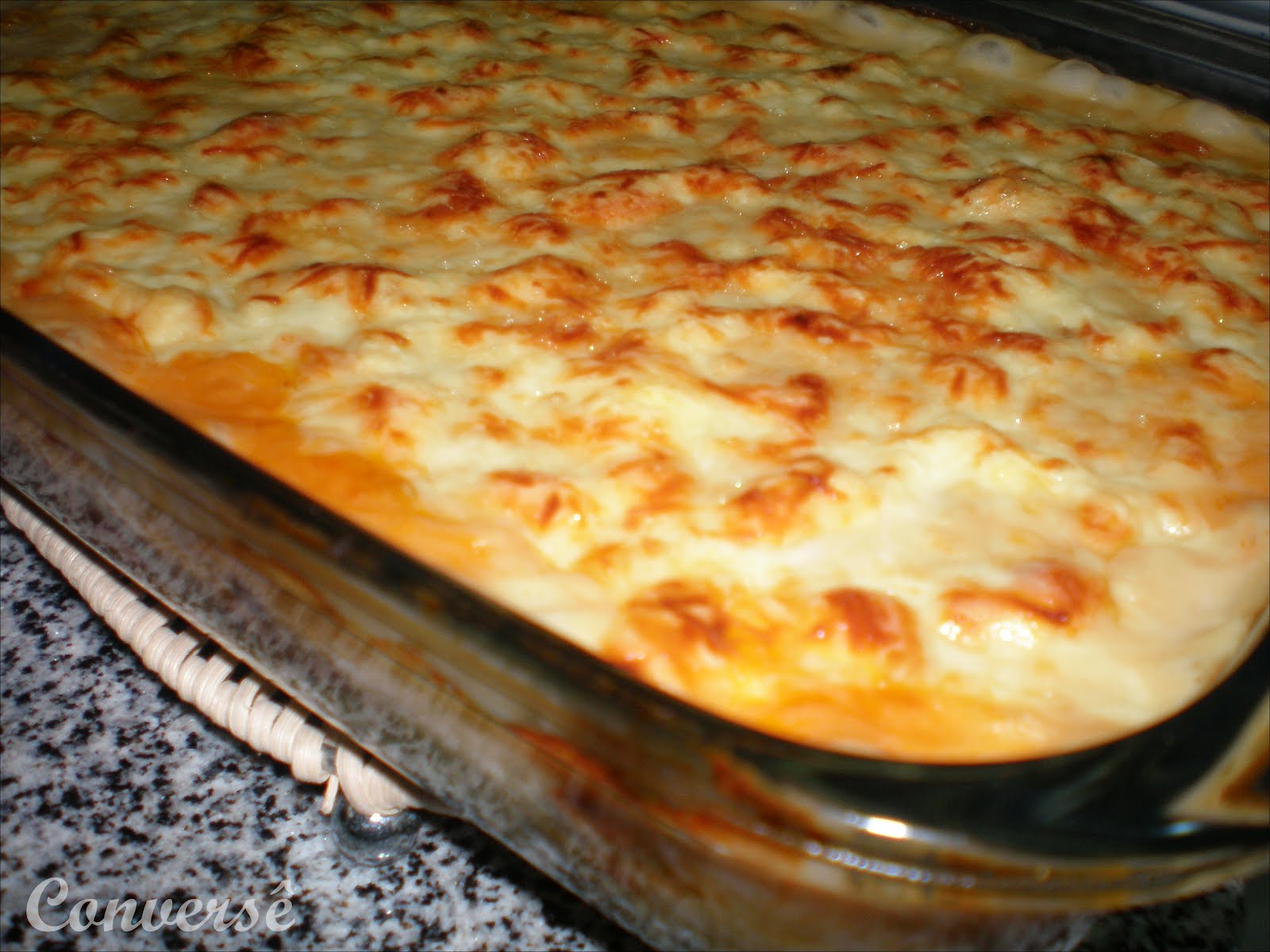 Transfira a mistura acima para um refratário retangular untado com azeite, cubra com molho de tomate e mussarela ralada a gosto