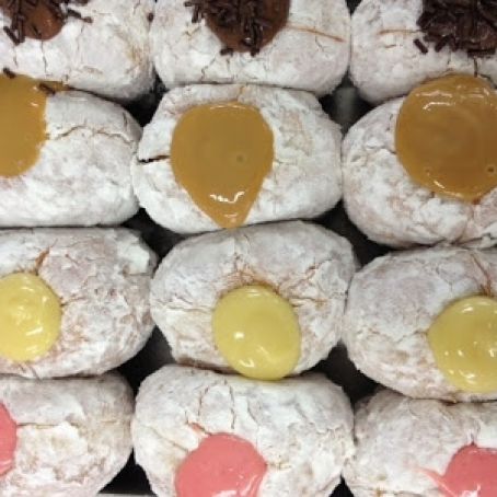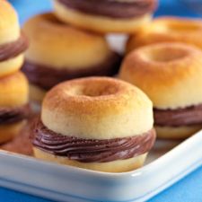 Envolva o mini donuts em açúcar de confeiteiro, fure com o auxilio de um bico fino e coloque o recheio de sua preferência.