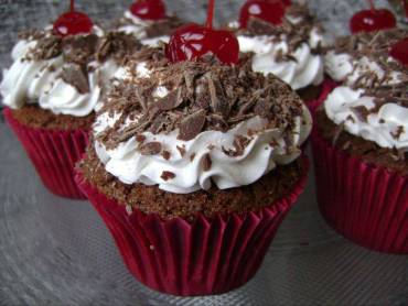 Cubra com chantilly, jogue raspas de chocolate e enfeite com 1 cereja