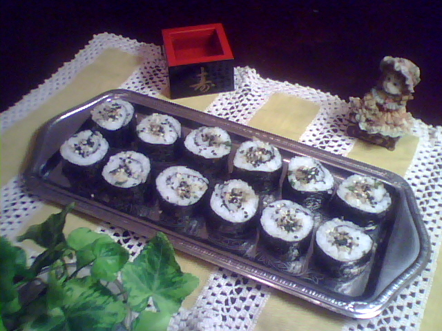 1. Colocar 1 folha de nori na esteira de bambu — o lugar deve ser bem seco, pois o nori não pode molhar.