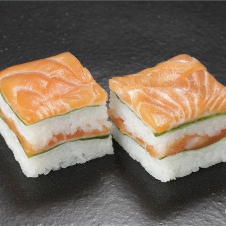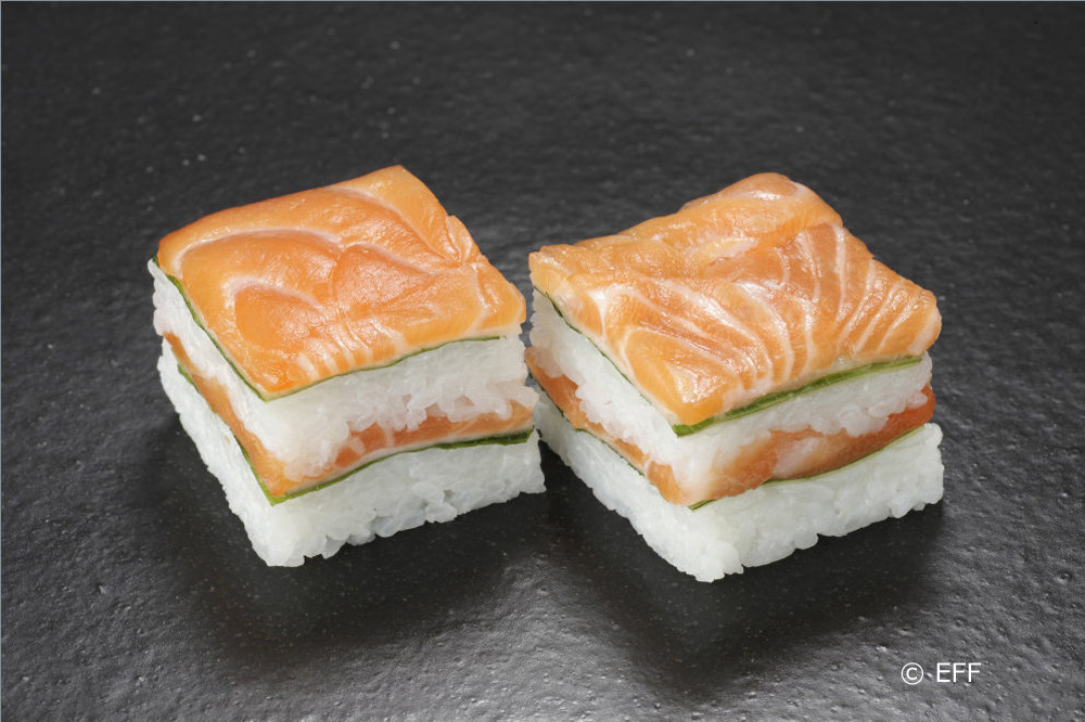 Um tipo diferente de sushi, feito numa forma de madeira para prensá-lo
