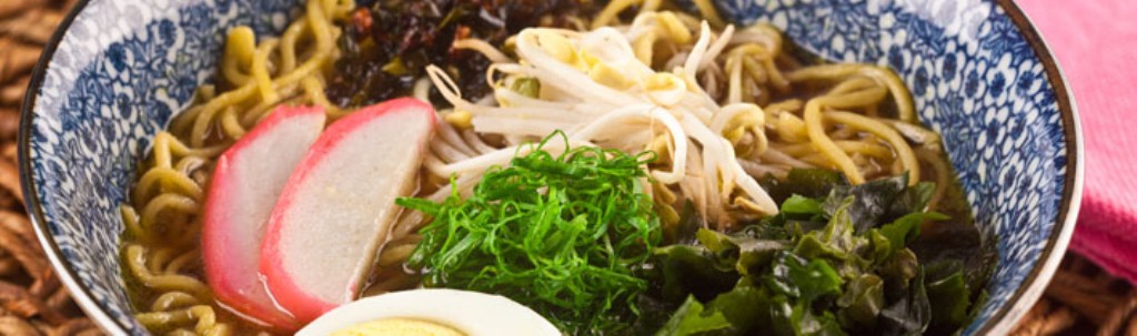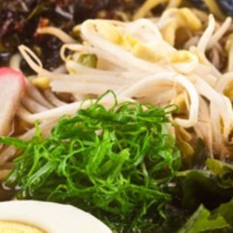 3. Em uma cumbuca grande e funda, disponha o macarrão ainda quente, adicione o caldo quente e finalize com cebolinha, kamaboko, ovo cozido, wakame, moyashi e cebolinha queimada. Sirva imediatamente.