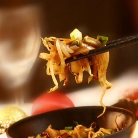 Em uma panela, derreta a manteiga e refogue as fatias de cebolapor cerca de 3 minutos. Adicione as fatias de shitake e deixe refogar por mais 2 minutos. Acrescente então o saquê, o hondashi, o molho de soja e o broto de feijão. Mexa bem e deixe cozinhar por mais 2 minutos.