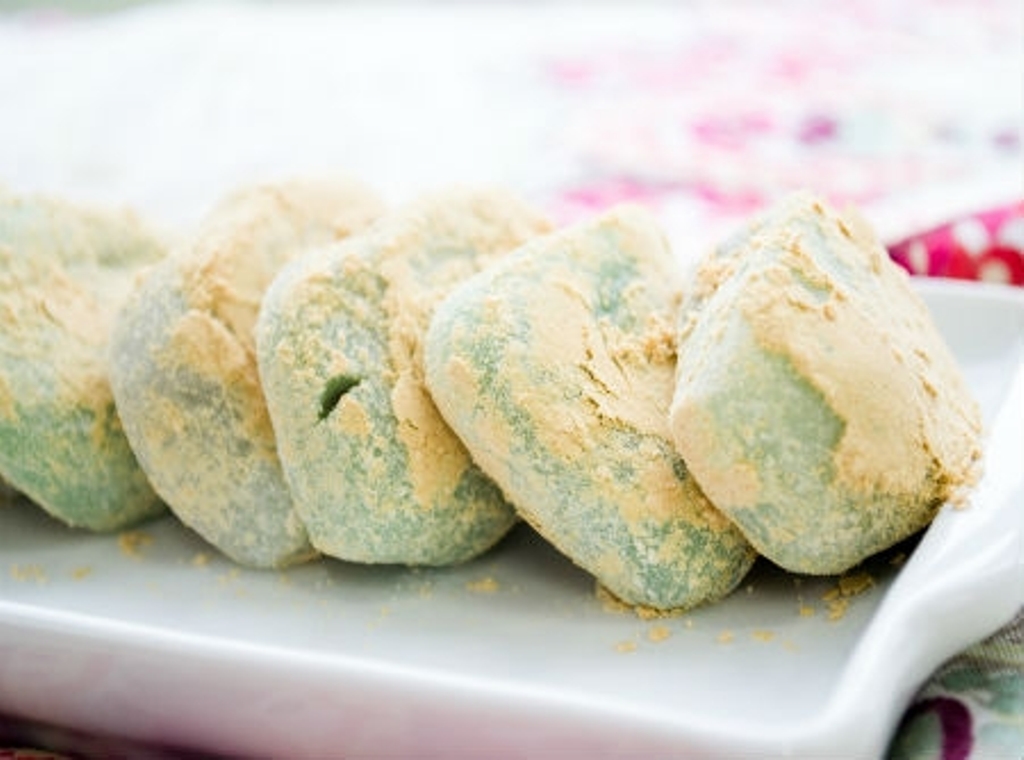 Passe os bolinhos na mistura de kinako, açúcar e sal e bom apetite!