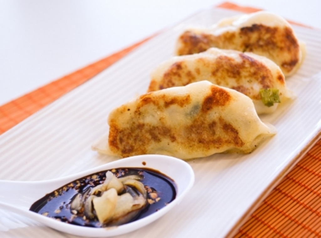 Se desejar, coloque num recipiente coloque shoyu, alho bem picadinho e um pouco de gengibre ralado, para mergulhar os guiozas na hora de comer.