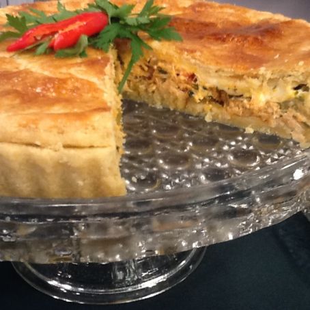 Na sequência,forre a forma de empadão com fundo falso, recheie e coloque o requeijão cremoso, feche a forma com o restante da massa, pincele com as gemas e leve para assar até ficar a receita ficar bem dourado.