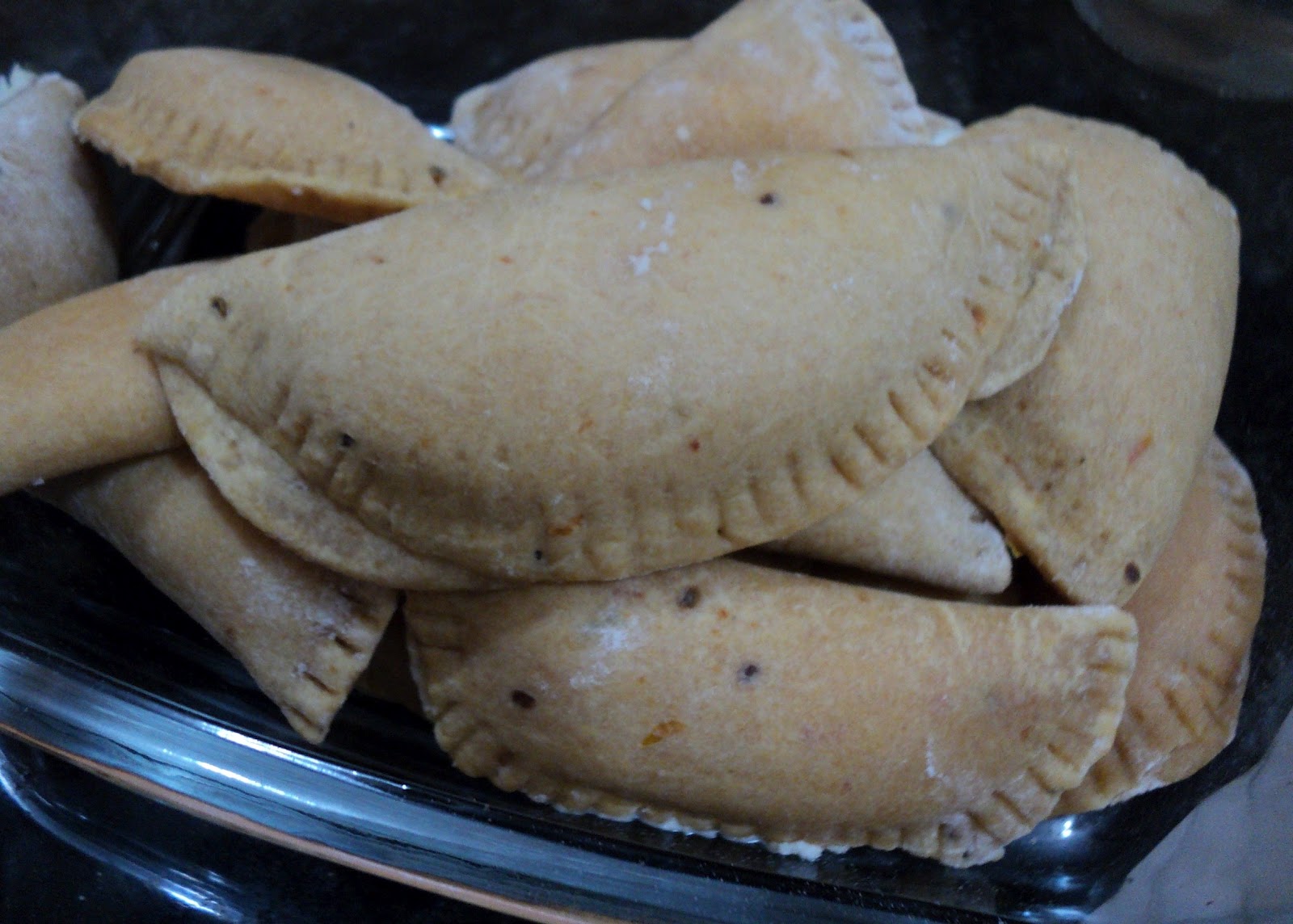 Coloque todos os ingredientes da MASSA em um recipiente e amasse com as mãos até desgrudar dos dedos (comigo não deu muito certo, dai fui colocando mais trigo até dar liga e começar desgrudar dos dedos).