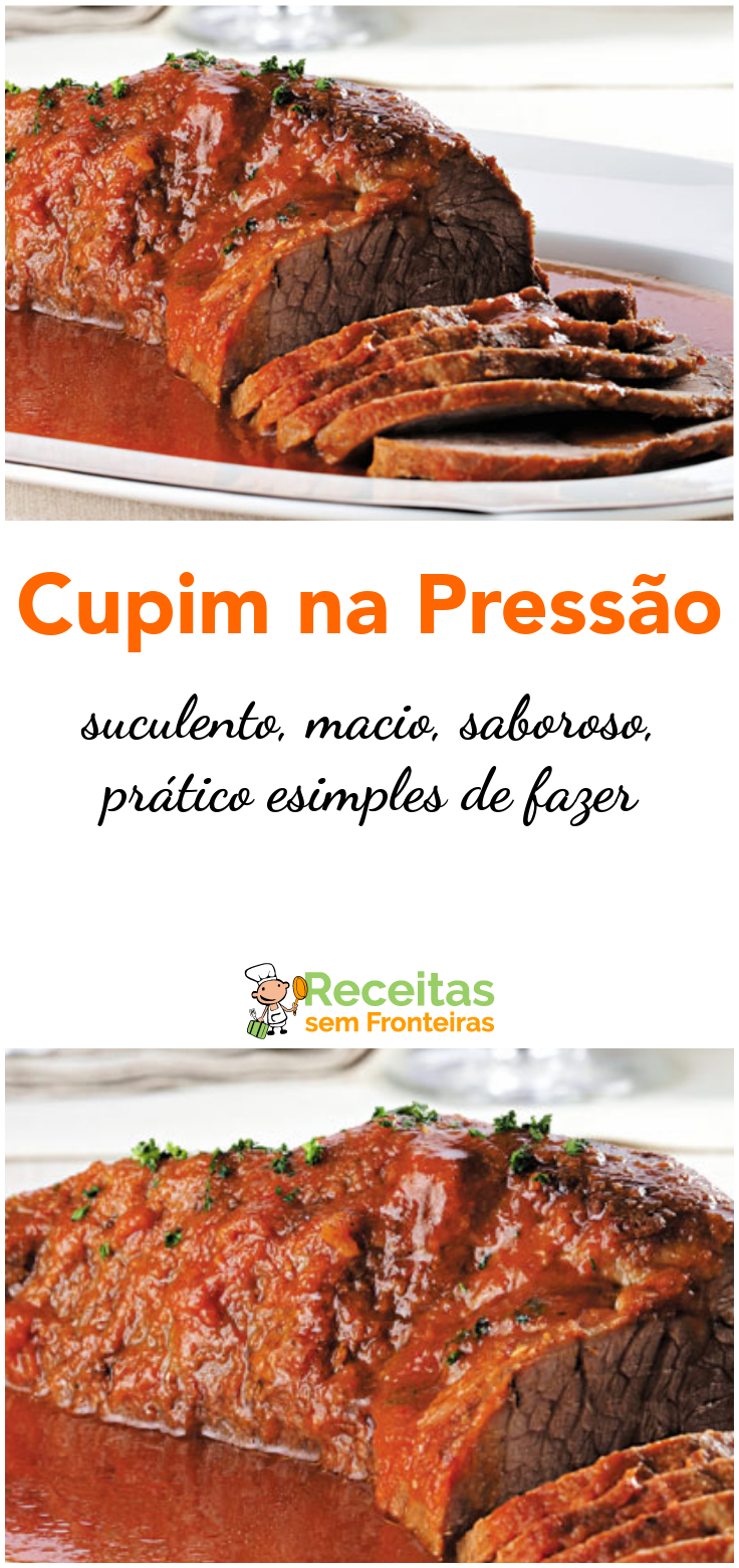 Refogue a cebola e o pimentão na panela de pressão, acrescente o cupim e doure dos dois lados, acrescente a água, tampe a panela e deixe na pressão por aproximadamente 40 minutos.