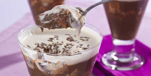 Calda:Misture o leite ao chocolate e umedeça os biscoitos.Em um pirex alterne camadas de biscoitos e de creme.
