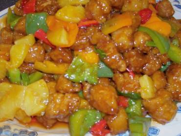 Fritar os pimentões, o abacaxi e a cebola no mesmo óleo, bem rápido, escorrer em peneira