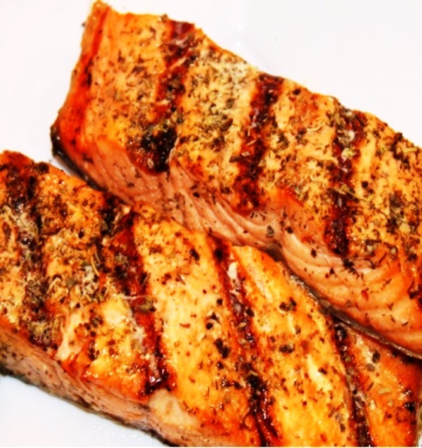 Tempere as postas do salmão sem pele com suco de limão e sal a gosto e as deixe marinar por cinco minutos. Em seguida, pegue uma panela pequena e coloque a manteiga e as ervas finas a gosto. Espere a manteiga espumar e, em seguida, desligue o fogo e reserve. Unte uma frigideira grande ou uma chapa com manteiga. Pegue as postas e as grelhe na chapa com manteiga, sempre virando e apertando. Depois disso, adicione o molho de ervas finas. |Reserve