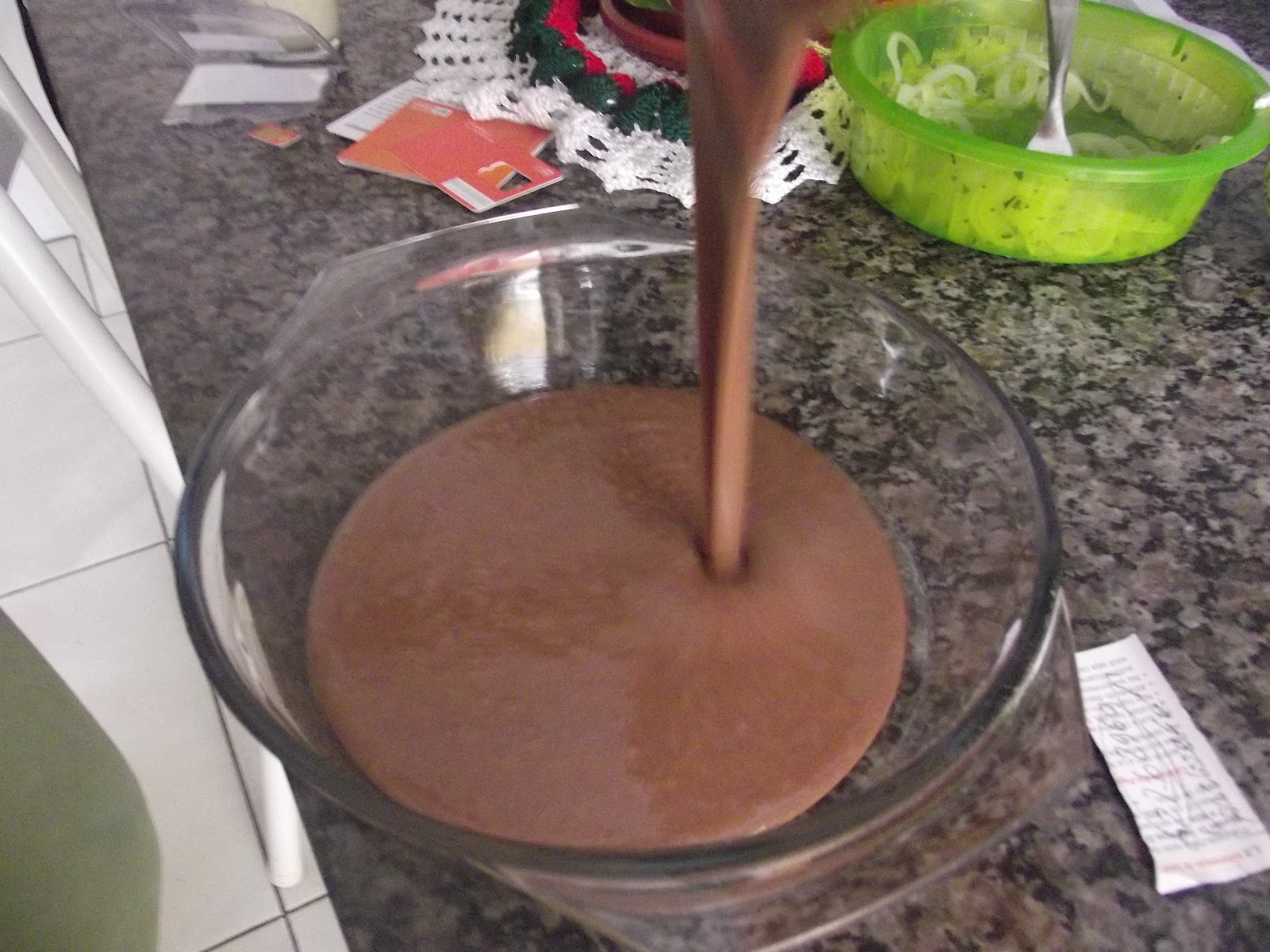 Faça um brigadeiro com o leite condensado, o chocolate e a margarina. Deixe cozinhar até que solte da panela. Depois deixe esfriar acrescente 1 lata de creme de leite, misture bem. Bata as claras em neve e acrescente ao chocolate, misturando bem devagar.