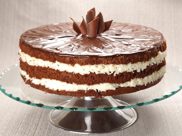 Bolo de chocolate, com recheio cremoso de coco e cobertura de Chocolate NESTLÉ CLASSIC Meio Amargo Ingredientes