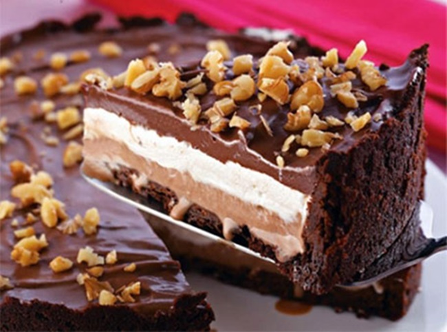 Faça a calda: derreta o chocolate em banho-maria misture o creme de leite e as nozes. Deixe esfriar por 10 minutos.