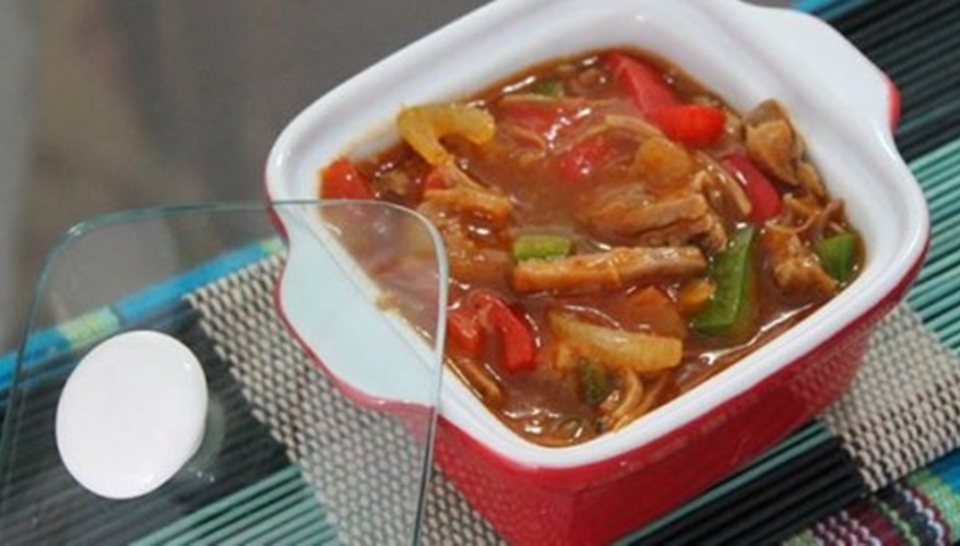 Acrescente os pimentões picadinhos e refogue bem até murchar.