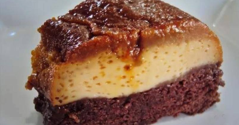 No liquidificador, bata todos os ingredientes do pudim por 2 minutos. Despeje com cuidado sobre o bolo e leve ao forno em 180° preaquecido, em banho-maria, por 1 hora em média.