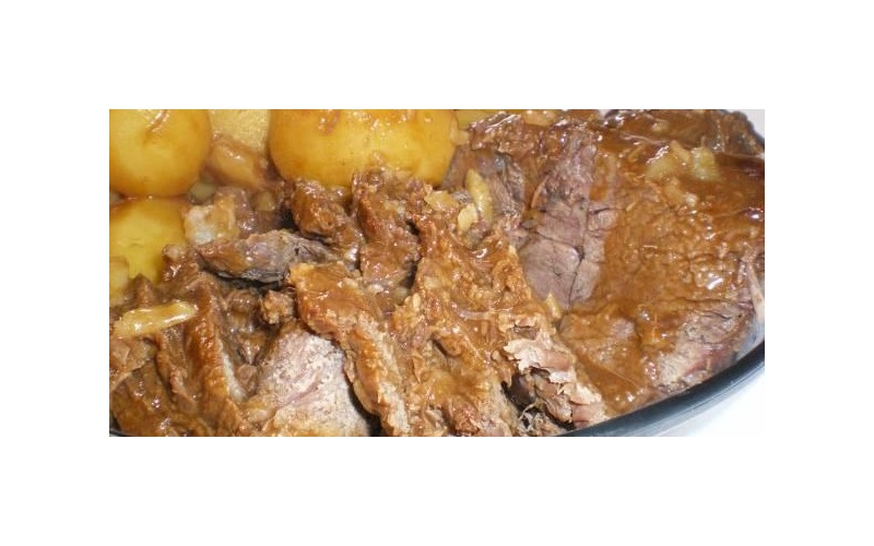 Batatas cozidas passadas no caldo da panela após retirar a carne, também fica muito bom