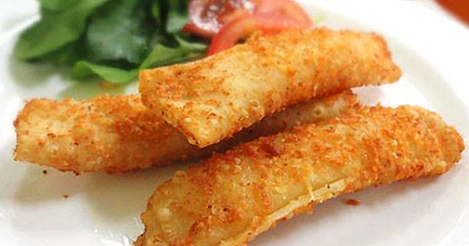 Pegue metade da salsicha, enrole bem firme na massa de pastel, passe no ovo e depois na mistura de queijo com tempero