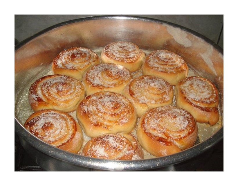 Depois, enrole a massa com o recheio e corte em fatias de 1,5 cm de espessura